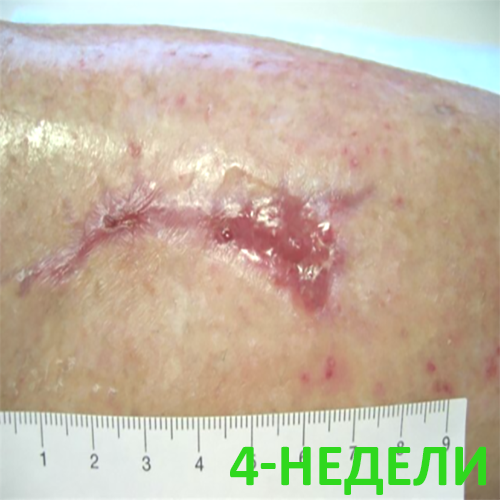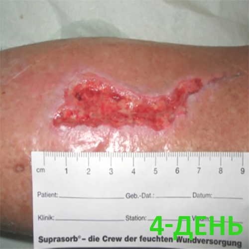 Через 4 дняУменьшение глубины раны. Заметная грануляция.Уменьшение выделяемого экссудата